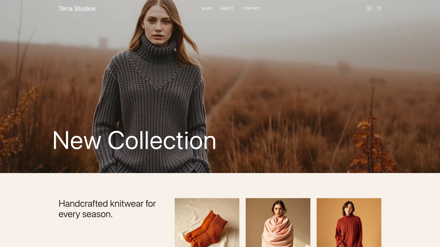 This template gives you a home and lifestyle e-commerce store that looks editorial and high-end, and you don't need design skills or developer help to make it work. The warm Scandinavian aesthetic—terracotta accents, cream backgrounds, serif typography—sets a tone that makes artisan products feel worth their price.